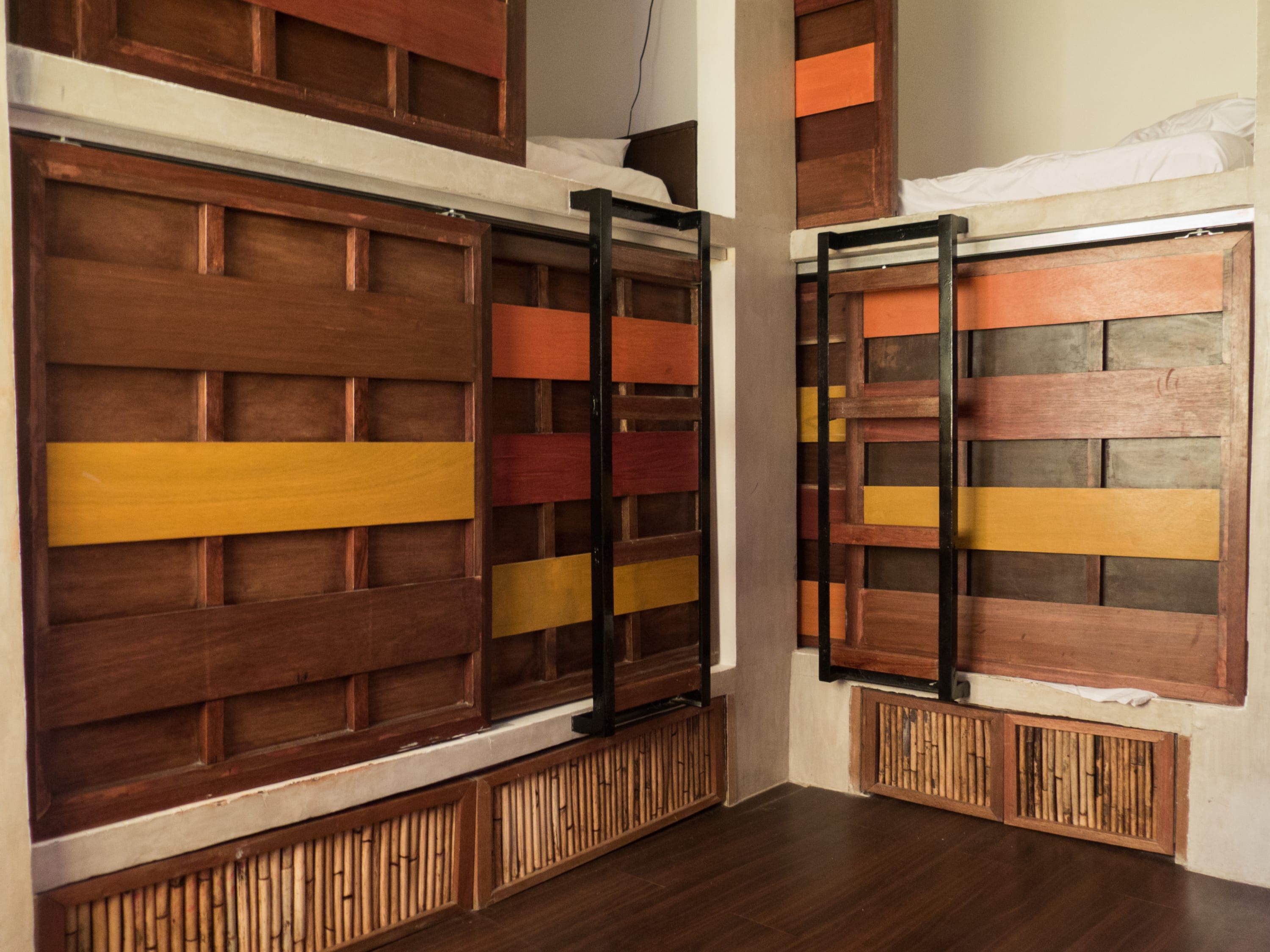 Located in the heart of El Nido town, this spacious and cozy 6-bed dorm is the perfect accommodation for solo travellers and groups alike. You'll have your own private balcony with swings sit in while you take in the beautiful sea views. With air-conditioning, wooden shutters, electrical outlets, a personal fan and lockable boxes in each bed you'll have your comfort and privacy. This room has 24hr WIFI access and shared bathroom with three hot-water showers, three toilets and a large sink with mirror.